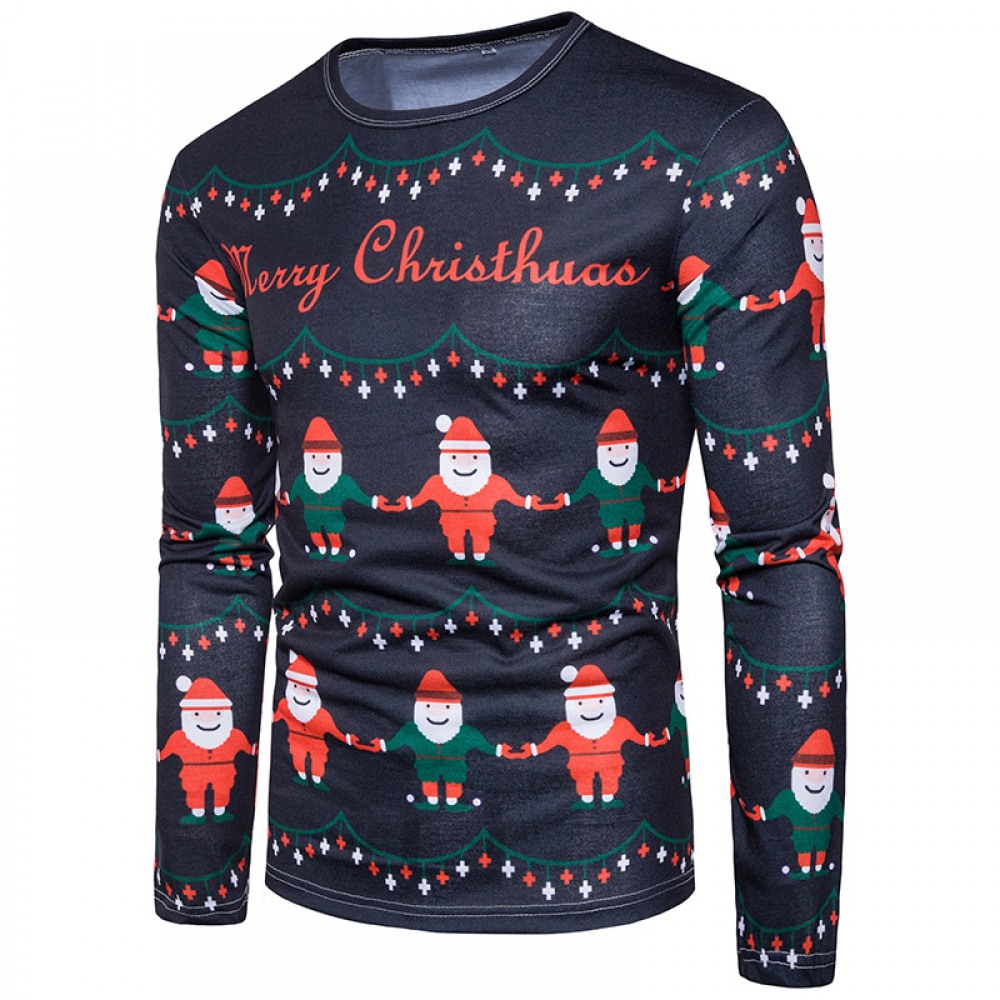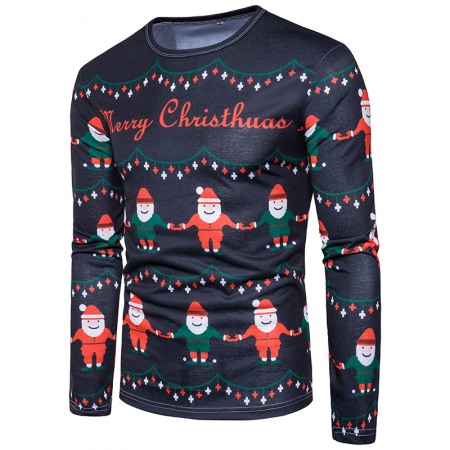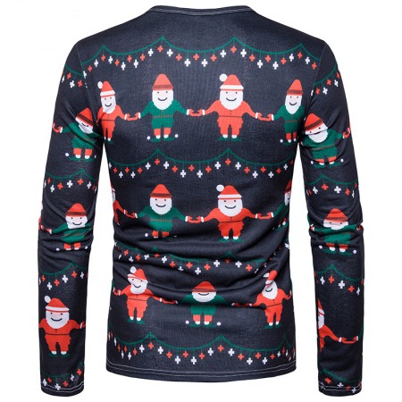 New 3D Personality Printing Fashion Men's Christmas Button Pattern Long-Sleeved T-Shirt