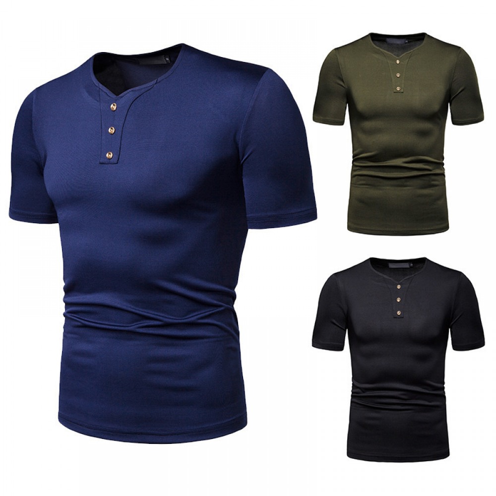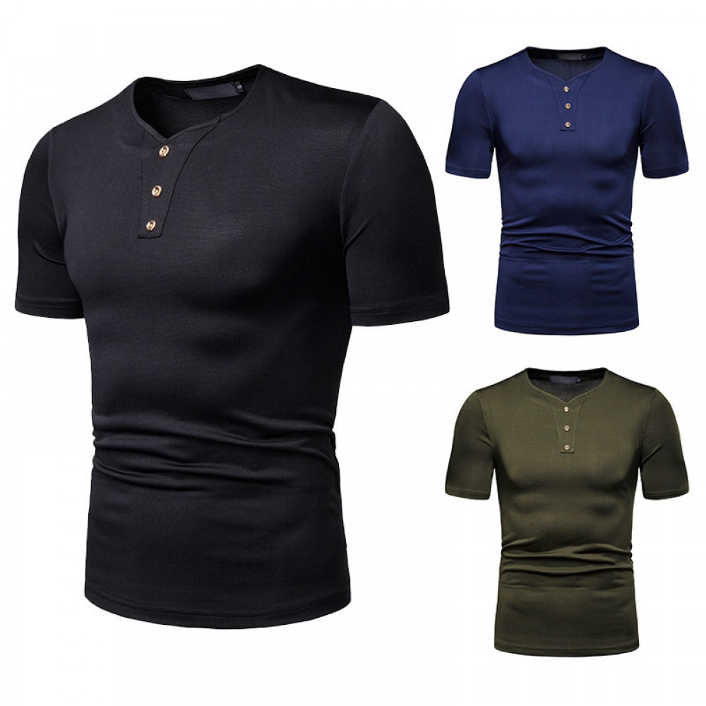 New Summer Men's Placket Knock Button Hit Color Short-Sleeved Bottoming T-Shirt Casual Lapel Bottoming Shirt