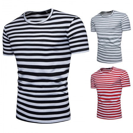 New Style Flat Men's Fashion Large Size Striped Short Sleeve T-Shirt