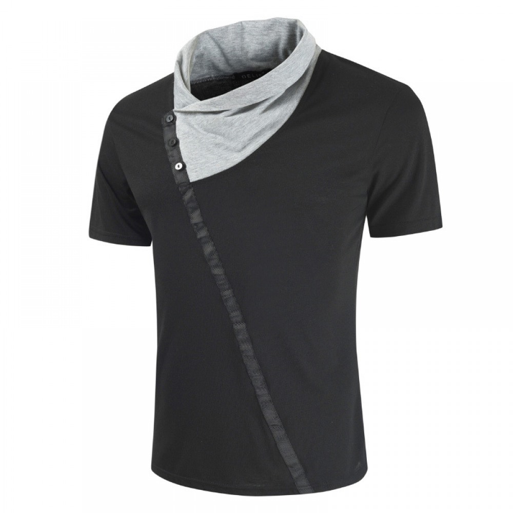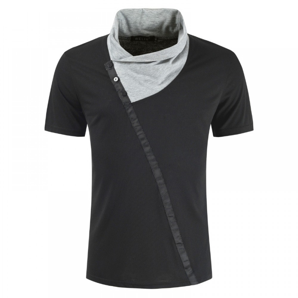 Summer New Style Short-Sleeved Fashion Color Matching Pile Collar Men's Casual T-Shirt